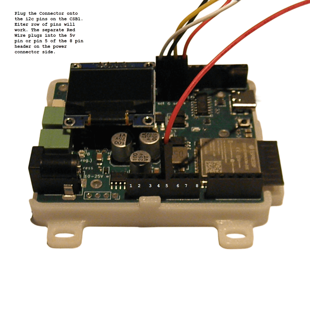 4 – pin header and 5vdc male for plugging into the CSB1